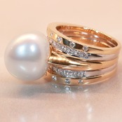 帝国ホテルにある老舗宝石店、ウエダジュエラーの大珠の白蝶真珠とダイヤモンドのリング。