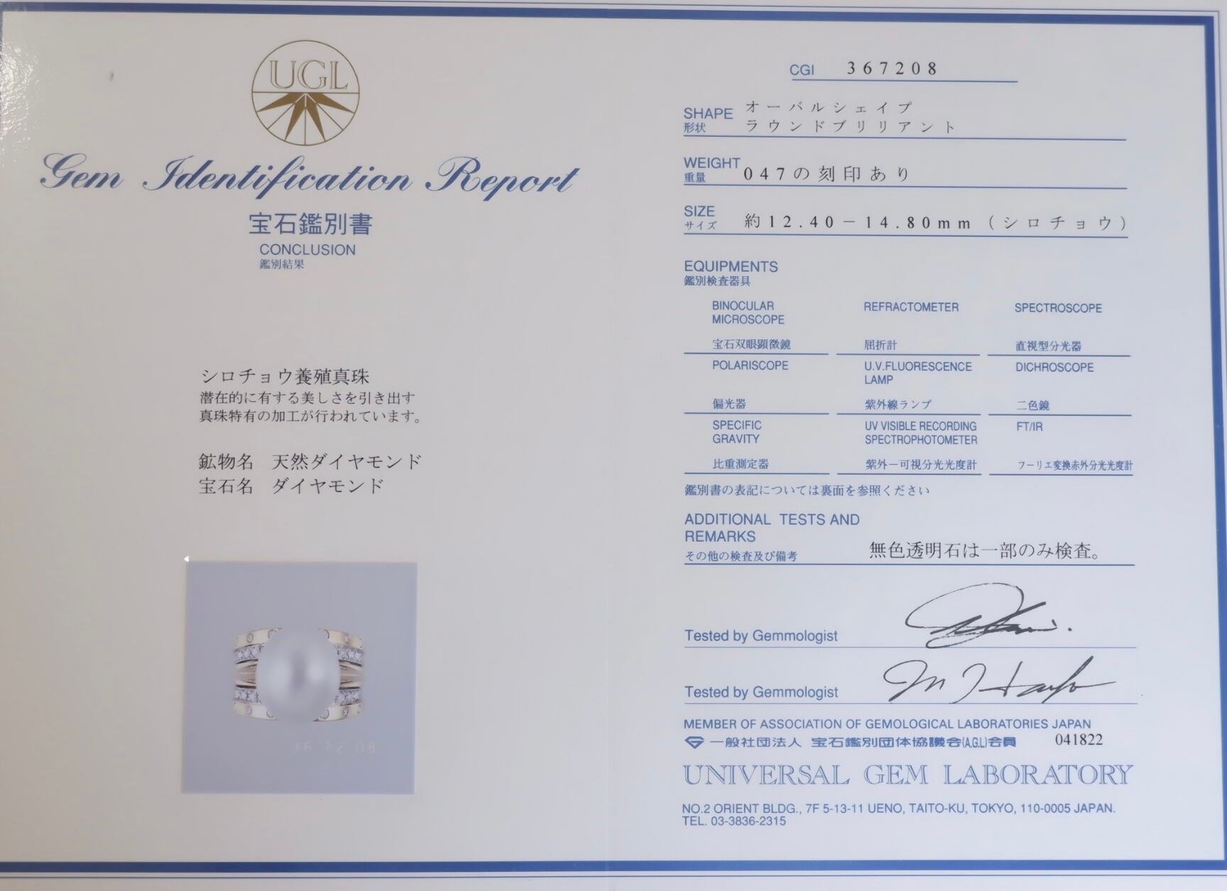 K18 Pt900 ウエダジュエラー 白蝶真珠 12.4mm−14.8mm ダイヤモンド 0.47ct リング 10.5号 プラチナ 真珠 パール